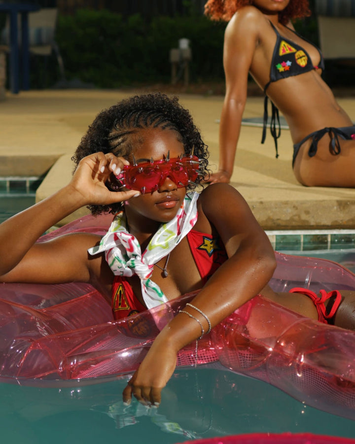 White Star Print Silk Scarf