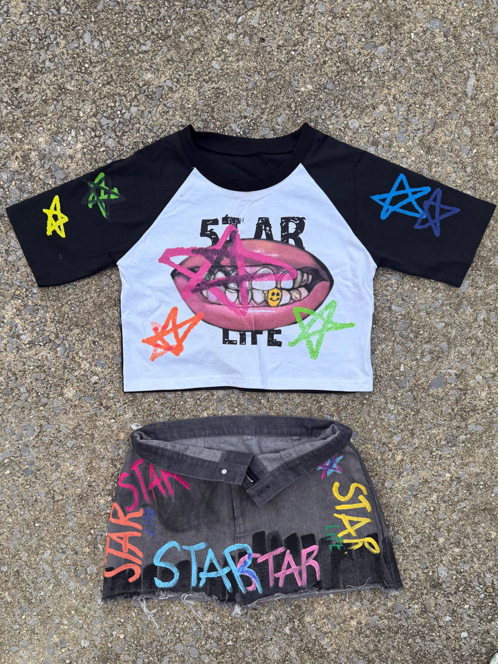 Black+ White Cropped 'Stargirl' Tee