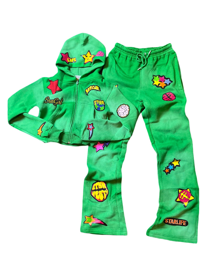 - Combination of embroidery patchwork, direct-to-fabric (DTF) printing, and screen printing for unique and eye-catching details