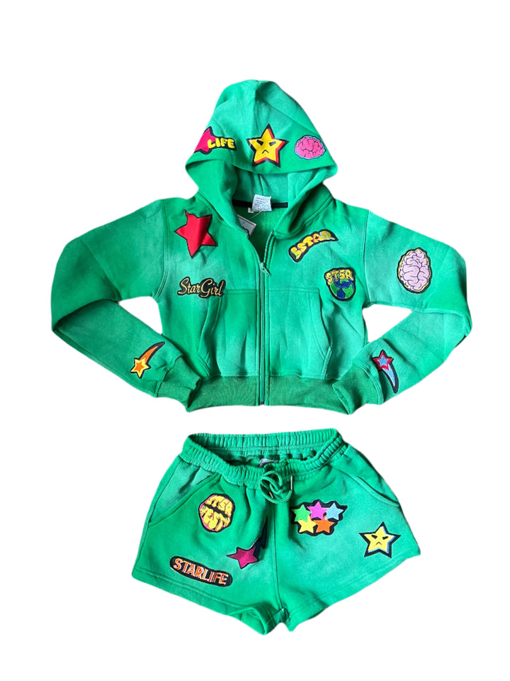 - Combination of embroidery patchwork, direct-to-fabric (DTF) printing, and screen printing for unique and eye-catching details